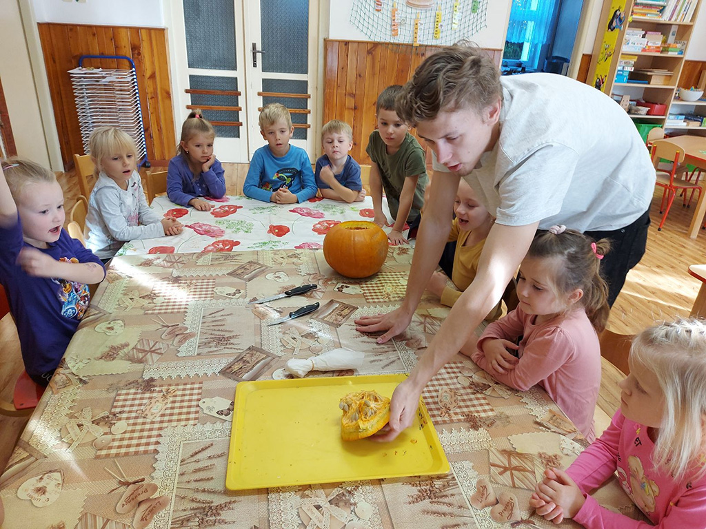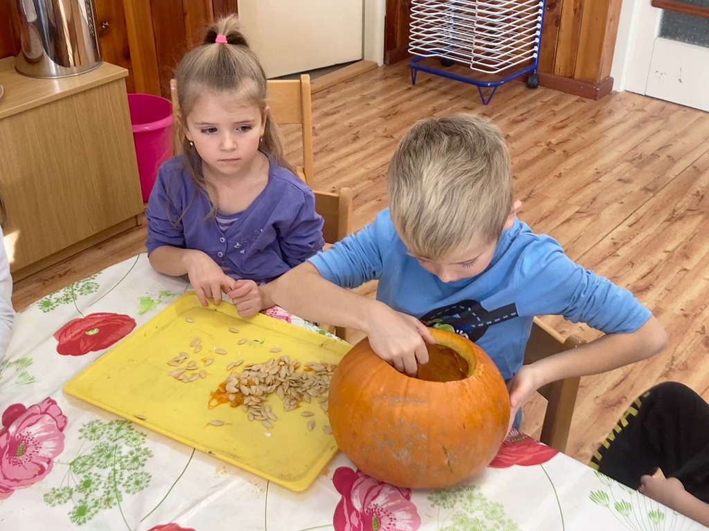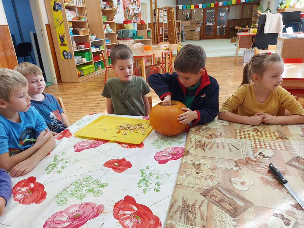 V dušičkovém týdnu jsme ve třídě Motýlci vydlabali "Velkého dýňáka." Tedy naši krásnou dýni. Podívejte se, jak nám to šlo. (30.10.2023) Patrik Velechovský