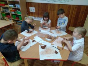 V týdnu s tématem "ptáčci v zimě" děti z Motýlků tvoří ptáčky z keramické hlíny.