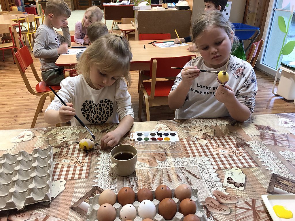 Malovali jsme vejce temperou, anilinovýma barva, obalovali v soli nebo krepovém papíru, zaseli ječmen, pletli pomlázky, které jsme hned vyzkoušeli. (3.-6.4.2023) Monika Szentesi