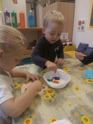 Třída Šnečků malovala hrnečky na čaj od Šípkové Růženky (malba vatovou tyčinkou a temperovou barvou). Třídní učitelka: Veronika Kočová