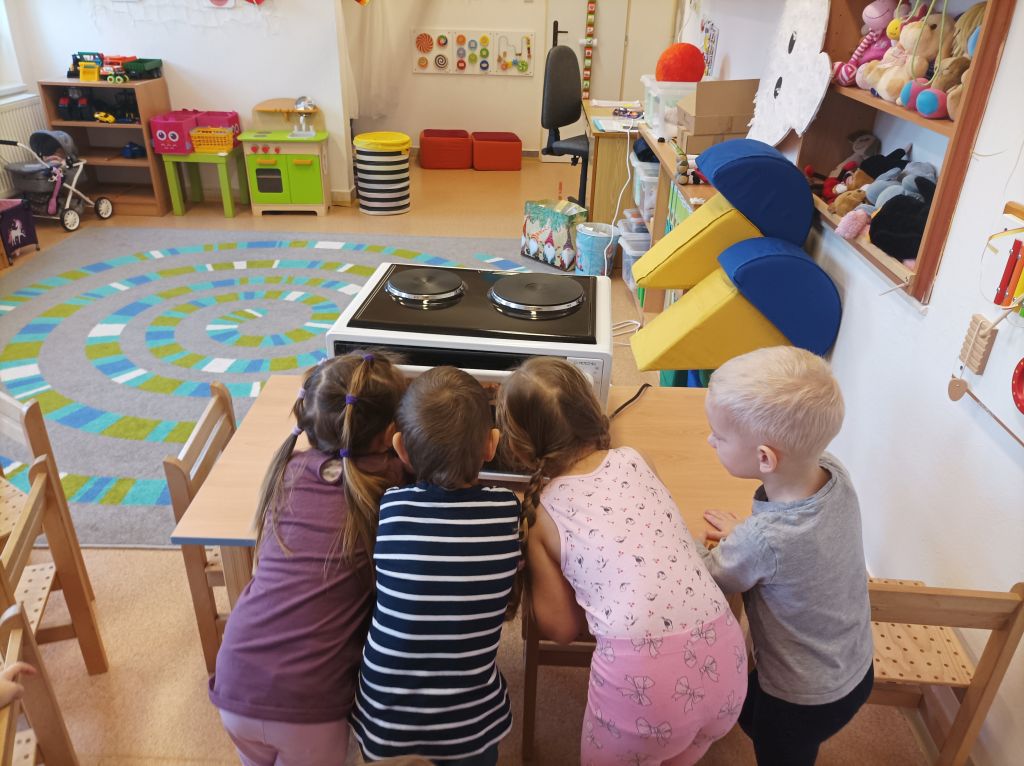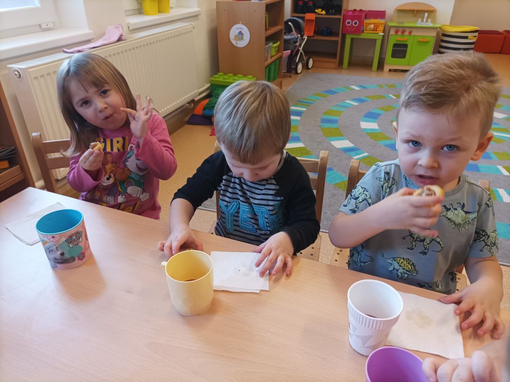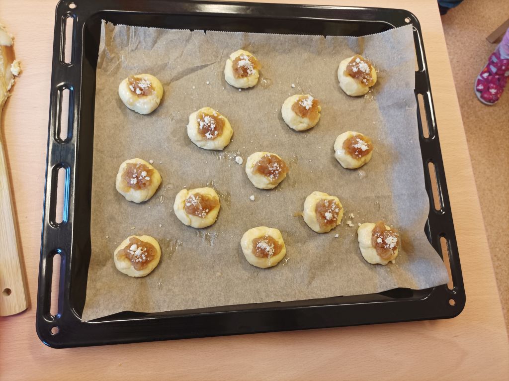 Nejmenší děti si vyzkoušely upéct jablečné koláčky. Radost byla veliká a chuť výborná. (20.2.2023) Veronika Kočová