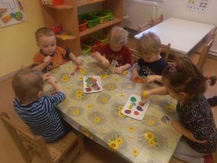 Děti ze třídy Šnečci se postaraly o ptáčky, zavěšením lojových koulí na stromy. Ptáčky si vytvořily pomocí míchání temperových barev a vyzkoušely si kouzlo kreslení zmizíkem. Třídní učitelka Veronika Kočová