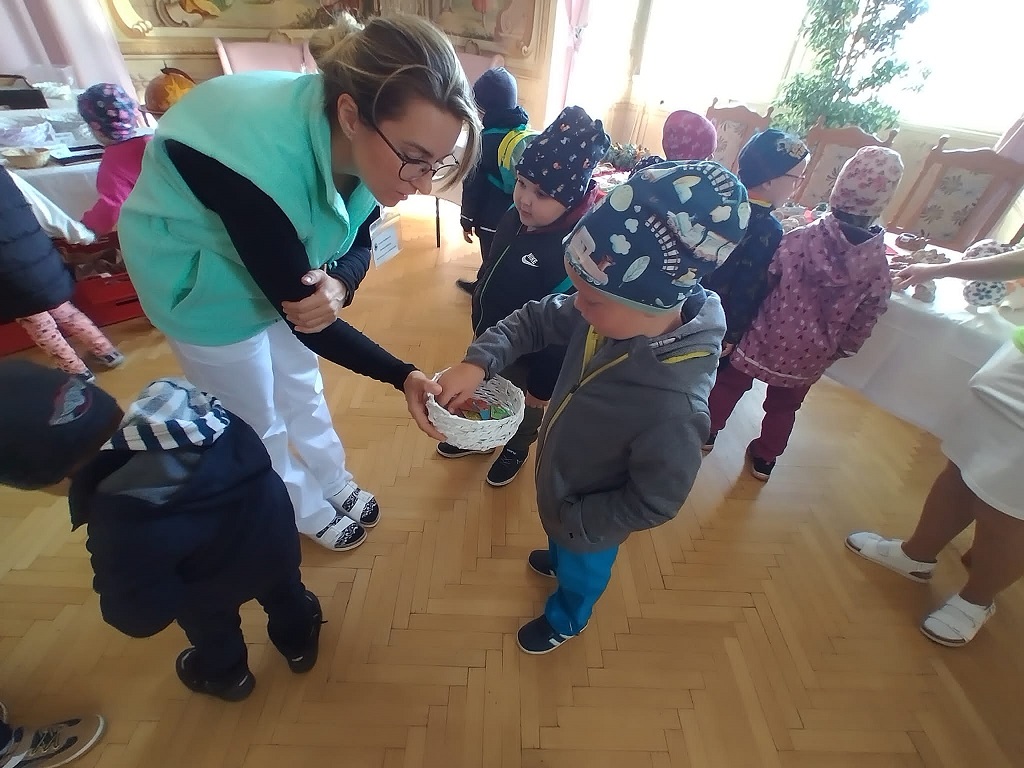 S dětmi jsme navštívili zámek, kde probíhala výstava podzimních výrobků. Děti potěšily místní seniory několika básničkami, které společně zarecitovaly. (18.10.2023) Vladislava Buryanová