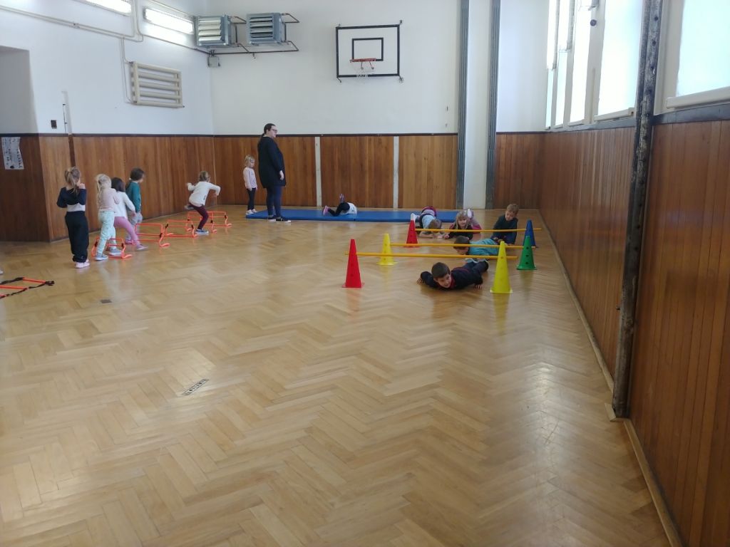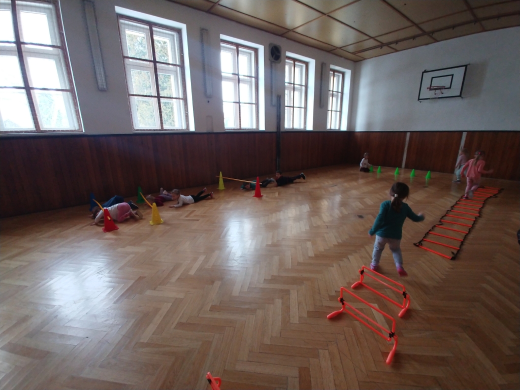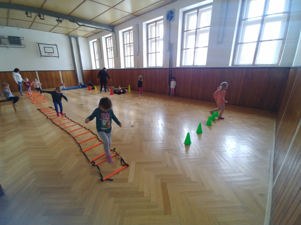 Dnes si středňáčci z Žabiček a Motýlů užili opičí dráhu v tělocvičně. Všichni to krásně zvládli a užili jsme si to.