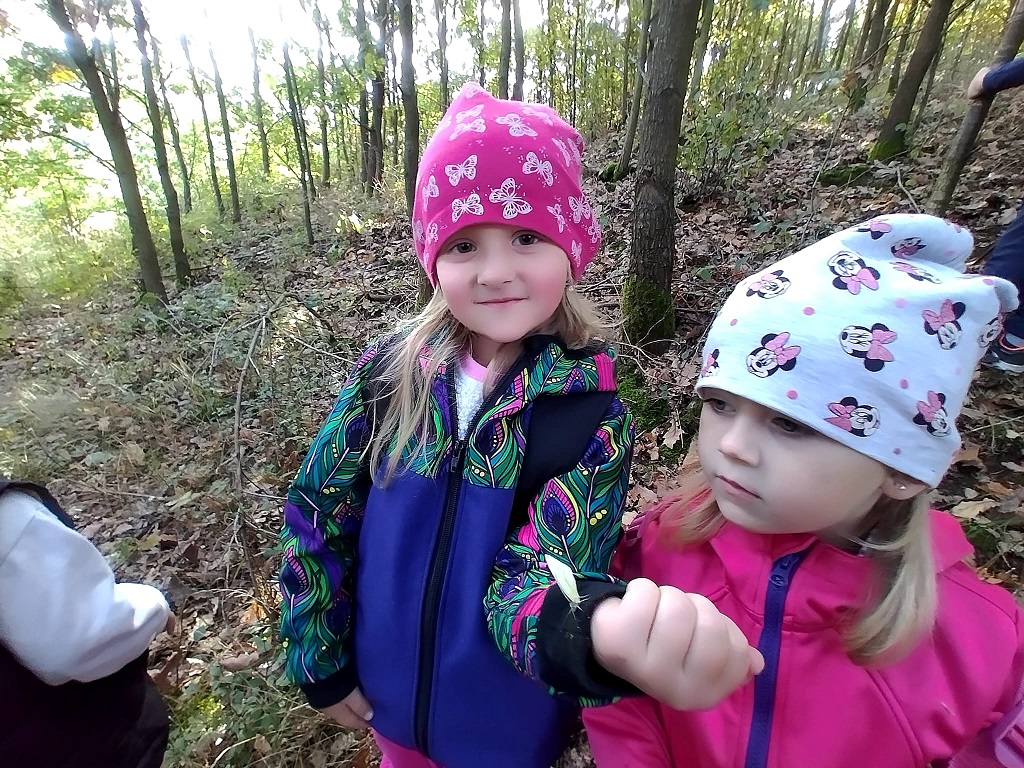 S dětmi jsme strávili dopoledne v nedalekém lese. Společně jsme poznávali stromy, zvěř a stavěli domečky. (5.10.2023) Vladislava Buryanová