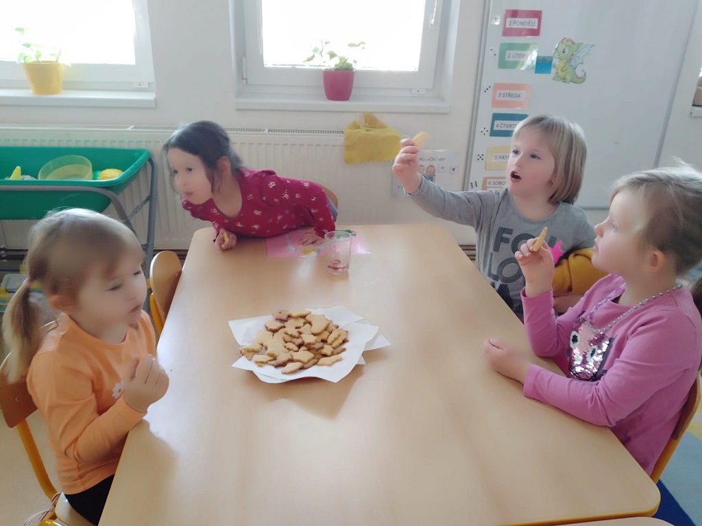 S dětmi jsme si upekli sladké vánoční sušenky. Společně jsme připravili těsto ze kterého děti s pomocí vykrajovátek vykouzlily sněhuláky, soby a stromečky. (30.11.2023) Vladislava Buryanová