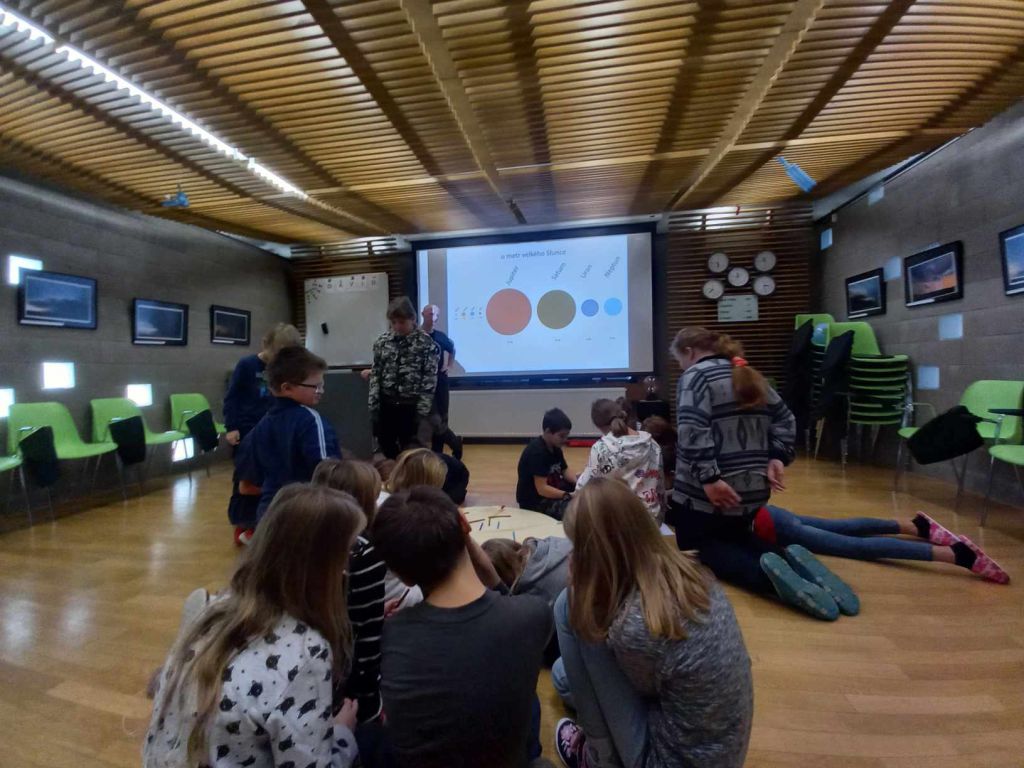 Po celou dobu se jim věnoval skvělý lektor pan David Vališka. Dozvěděli se mnoho nových informací o vesmíru, prohlédli si meteority, pracovali ve skupinách, kde tvořili svoji Sluneční soustavu a snažili se odhadnout poměry vzdáleností mezi jednotlivými planetami. Všichni byli nadšení.