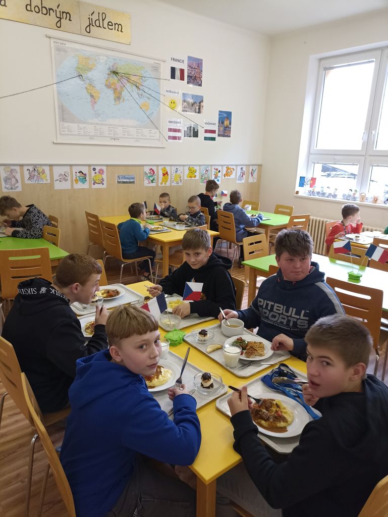 27. 2. se všichni strávníci školní jídelny ZŠ Rožďalovice přenesli do Francie.