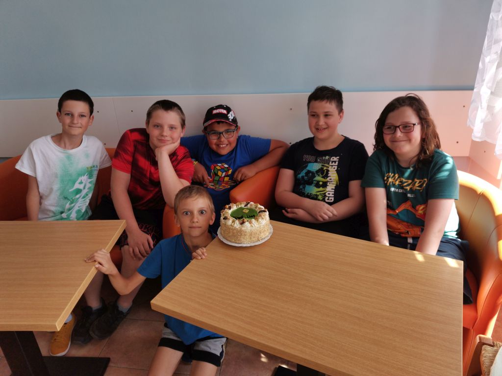 Naše bronzová šestice se seznámila s výsledky na jednotlivých stanovištích a v poznávačce. Z bodového hodnocení jsme zjistili, ve kterých oborech musíme přidat, abychom příště byli ještě lepší. A pak už jsme oslavovali – začali jsme zakrojením do speciálně vyrobeného (a vynikajícího) dortu, který připravila cukrárna Epiro.