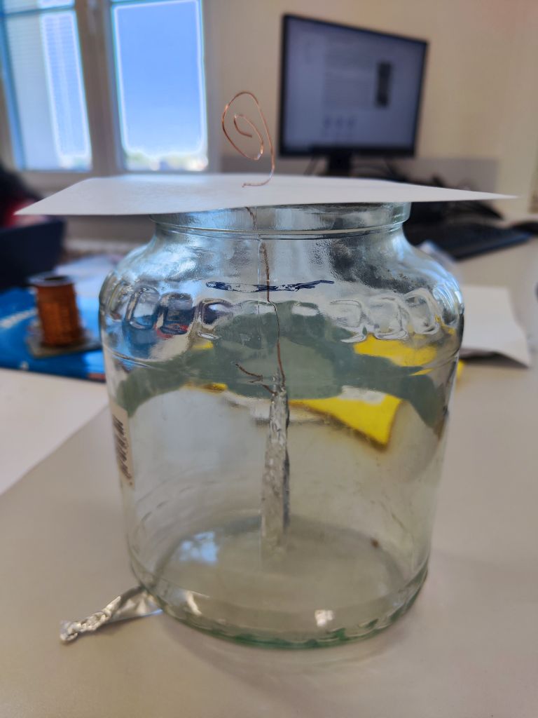 Sestrojili jsme si domácí elektroskop. K tomu nám stačila, sklenice, měď, papír, alobal a balonek nebo igelitový pytlík.