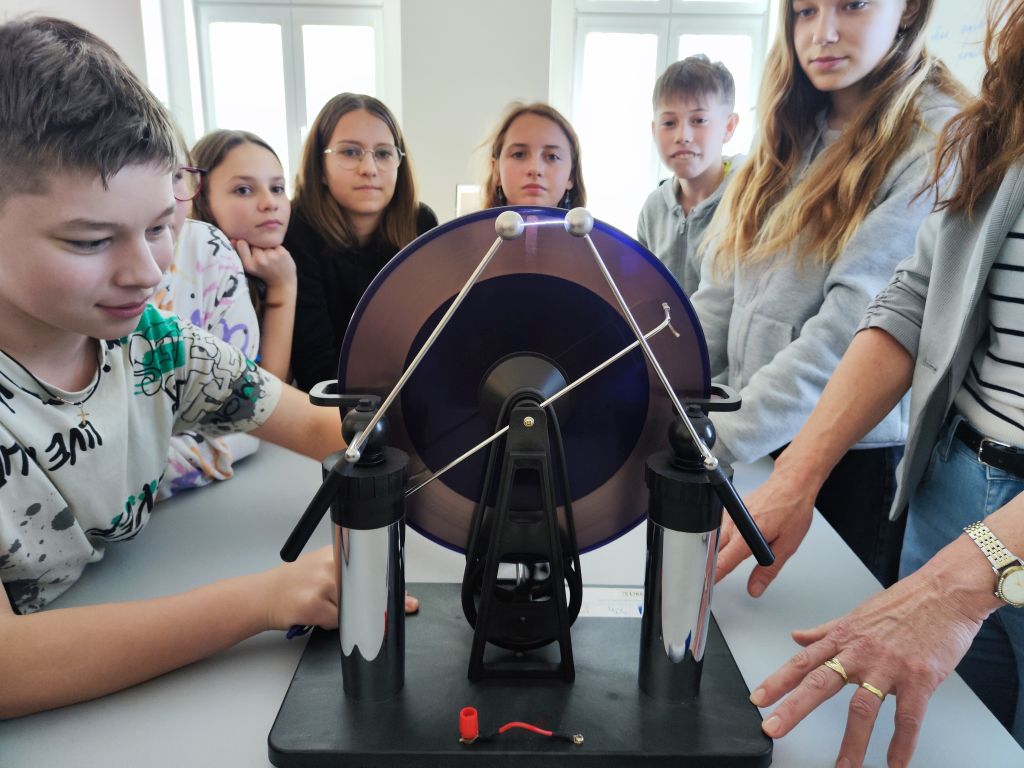 Zkoumali jsme a používali Wimshurstův generátor, který třením vytváří elektrostatickou energii.