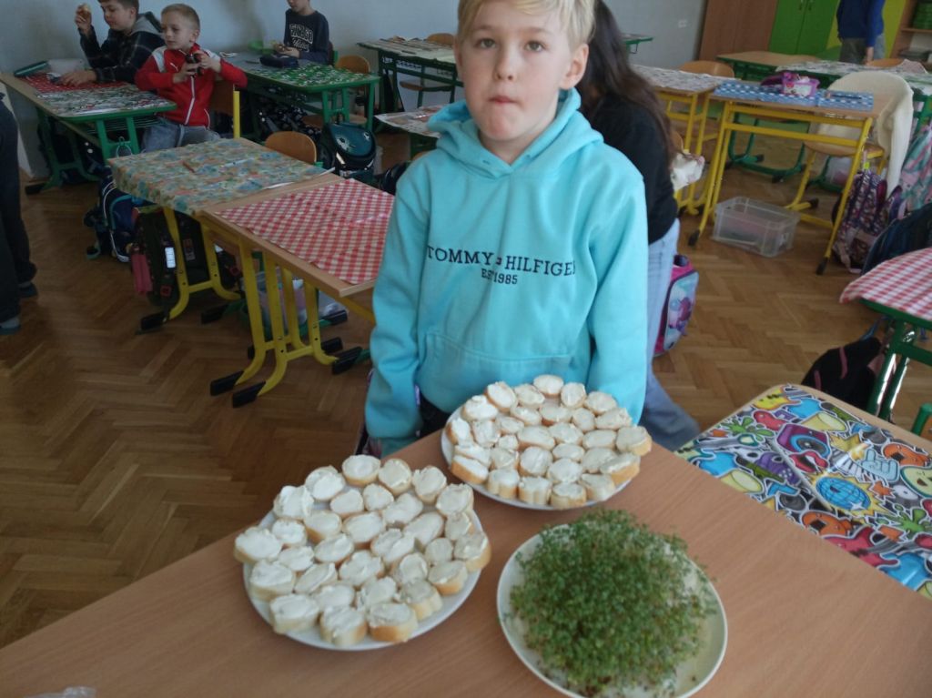 Nejprve si vyseli semínka řeřichy, sledovali jednotlivé fáze růstu a nakonec si pochutnali na jednohubkách.