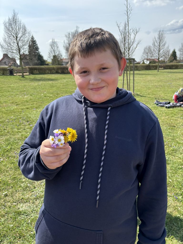 Nejdříve teorie ve školní lavici v hodinách přírodovědy s paní učitelkou Saskovou a následně praxe v přírodě. Poznáváme a hledáme, co jsme se naučili. A jako bonus, jsme natrhali krásnou kytičku, která nám teď bude dělat radost ve třídě.
