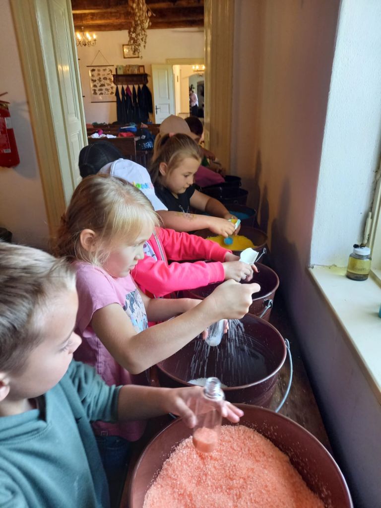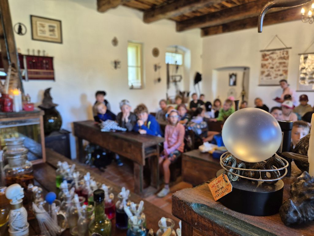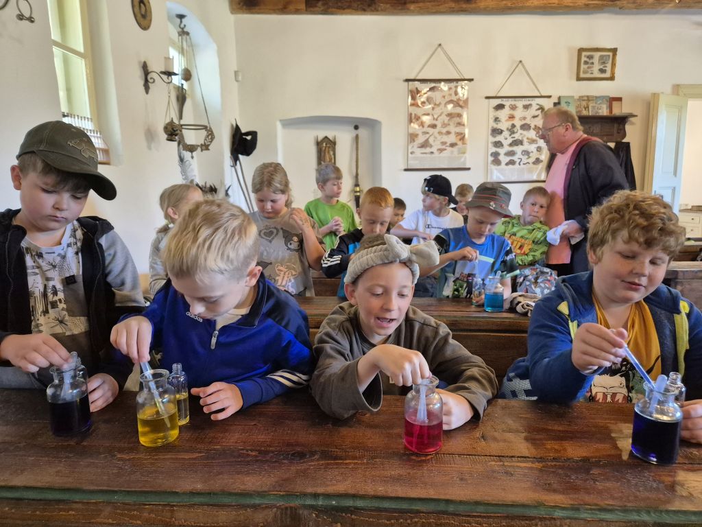 Dílnou nás provedla zkušená alchymistka, v jejímž arzenálu vedle bylinek a vonných směsí nechyběl ani moudrý klobouk, kouzelné hůlky či několik fantastických zvířat - včetně sovy Hedviky. Pod jejím přísným, ale laskavým dohledem jsme si vyrobili léčivé koupelové soli a vonné olejíčky. Někteří si odnesli dokonce elixír mládí!