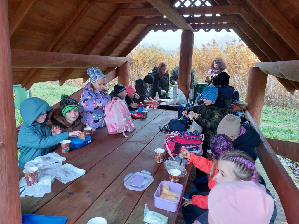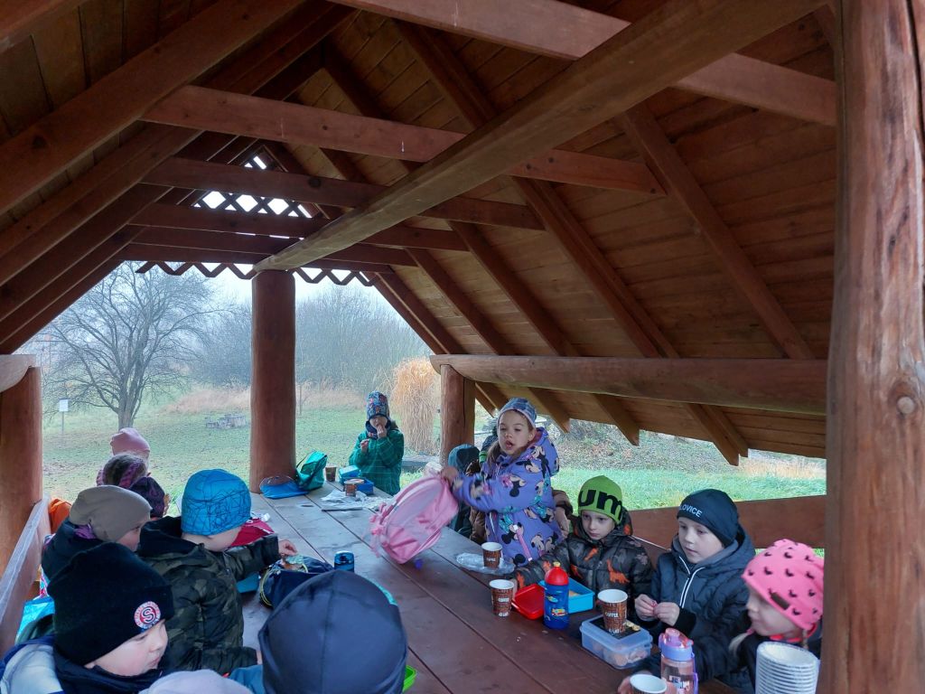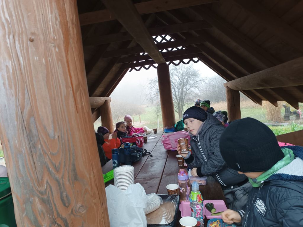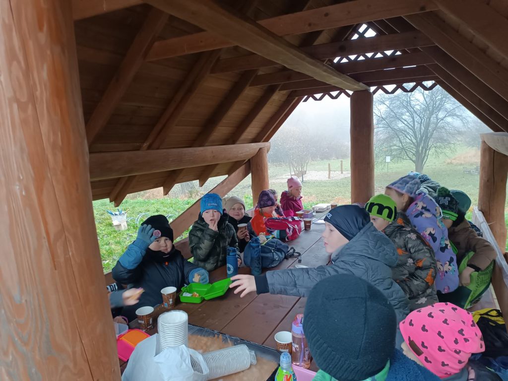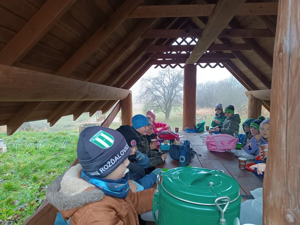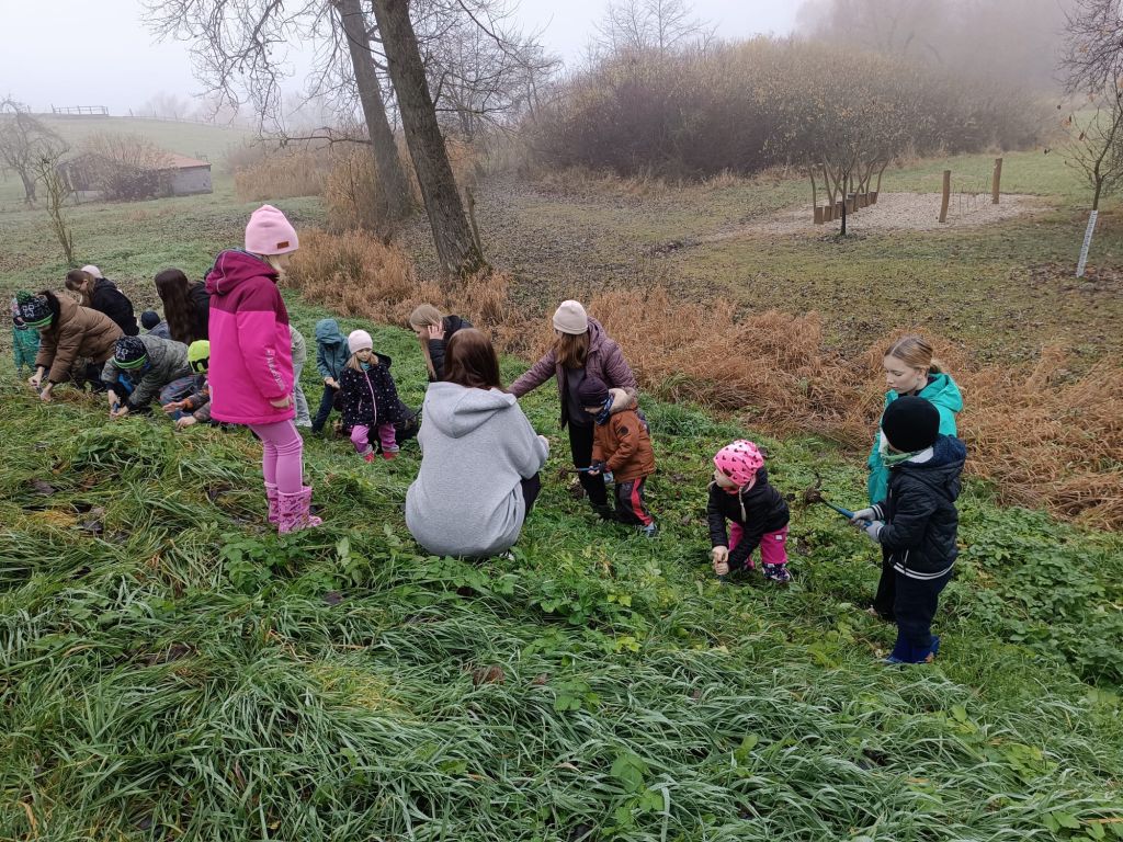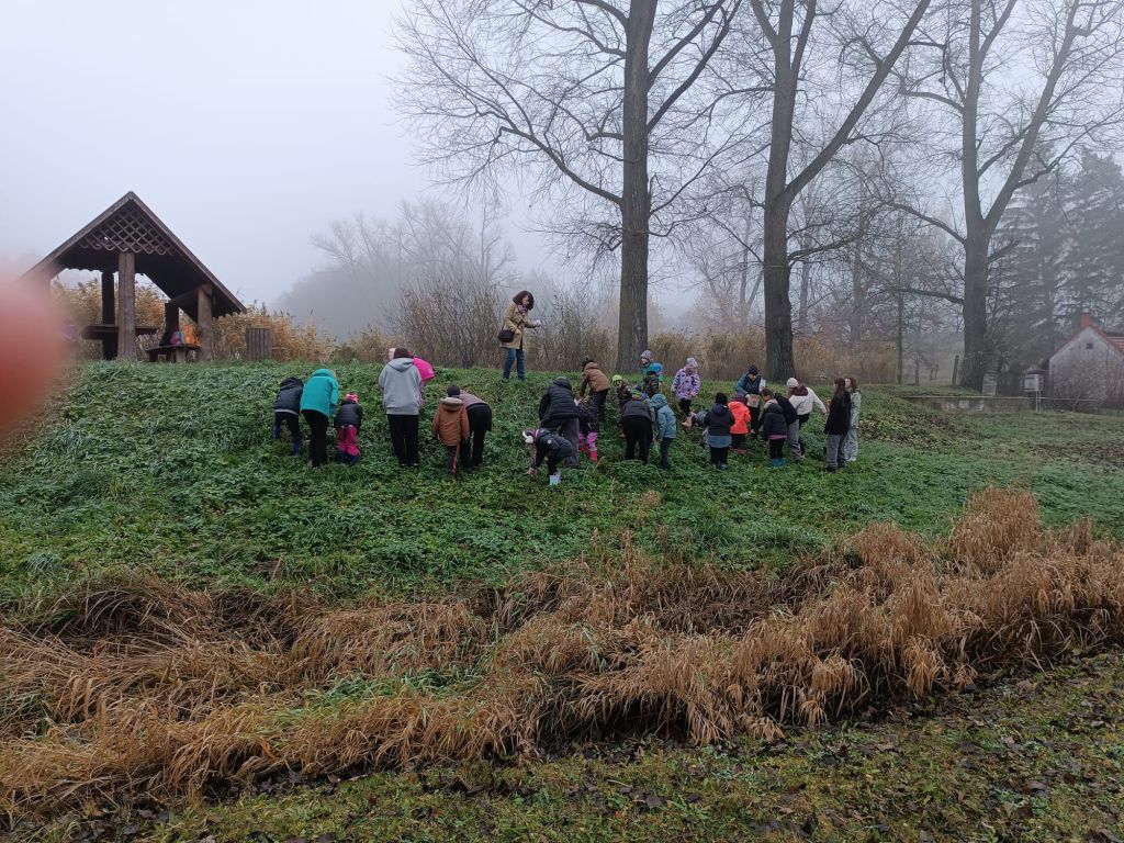 Po společné svačině – horkém čaji a jablečné buchtě od našich úžasných paní kuchařek – přišel nejdojemnější okamžik: každý deváťák s prvňáčkem společně zahrabali lahev u svého stromu. Byl to symbol přátelství, předávání zkušeností a naděje, že jejich stromy i vzpomínky porostou a budou tu i pro další generace.