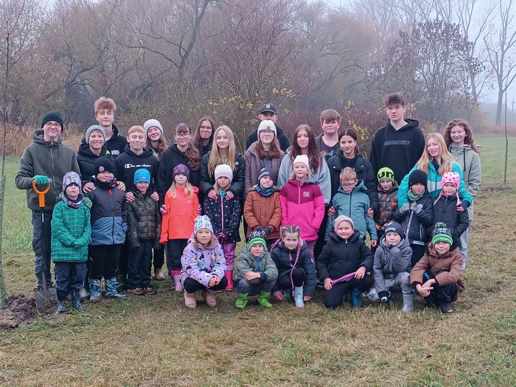 Dne 12. 11. 2025 se naši deváťáci opět vydali na Holské rybníky – tentokrát po boku svých malých prvňáčků. Před devíti lety právě oni sami sázeli své první stromy, a dnes předávají tuto krásnou tradici dál.