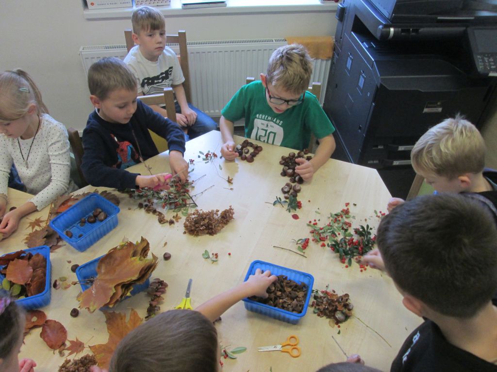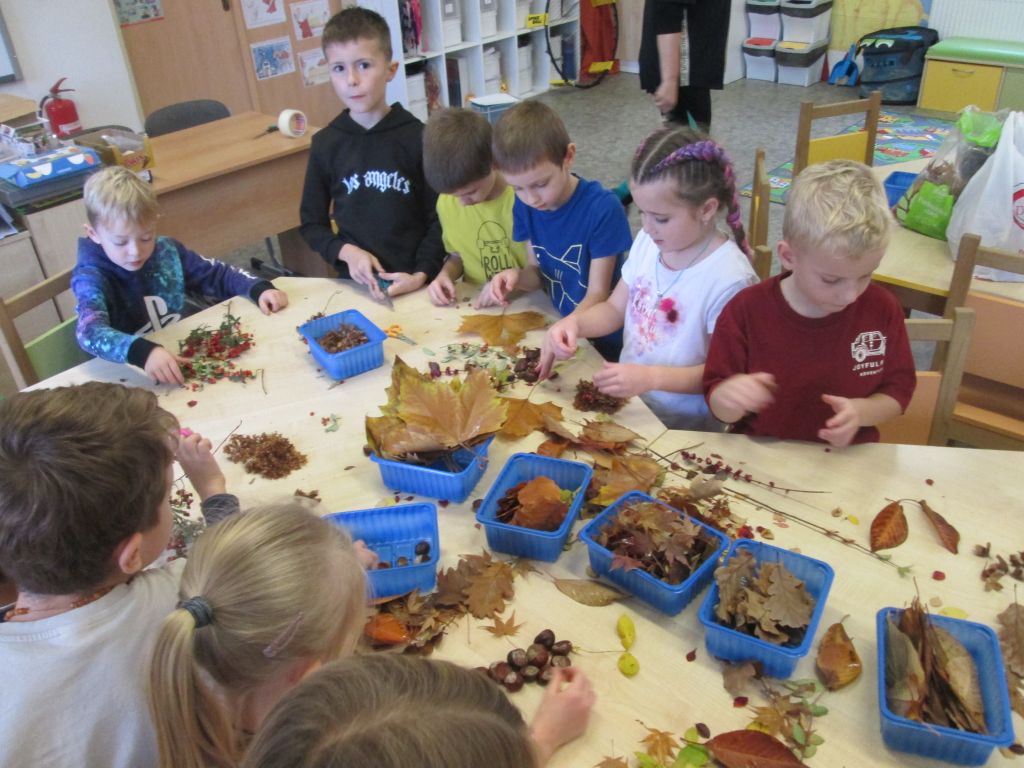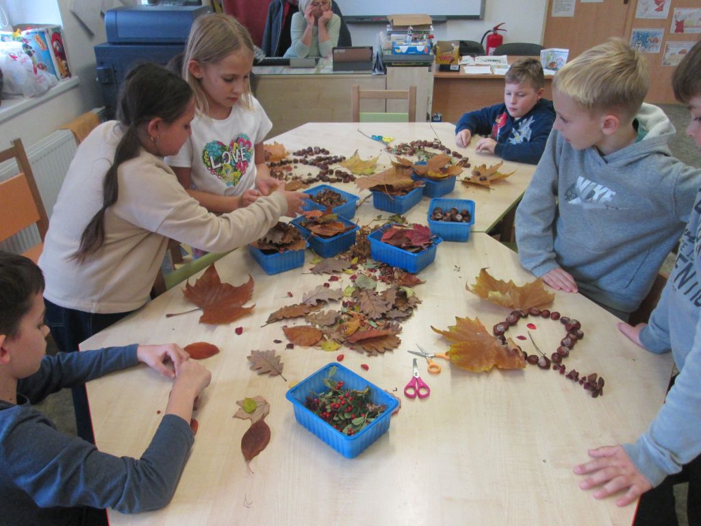 Podzim nabízí velké množství barev a spoustu materiálu na tvoření. Toho jsme využili s dětmi ze školní družiny a ze sesbíraných přírodnin jsme si vytvořili různé obrázky. Činnosti, u kterých mohou děti pracovat podle své fantazie, jsou velmi oblíbené.