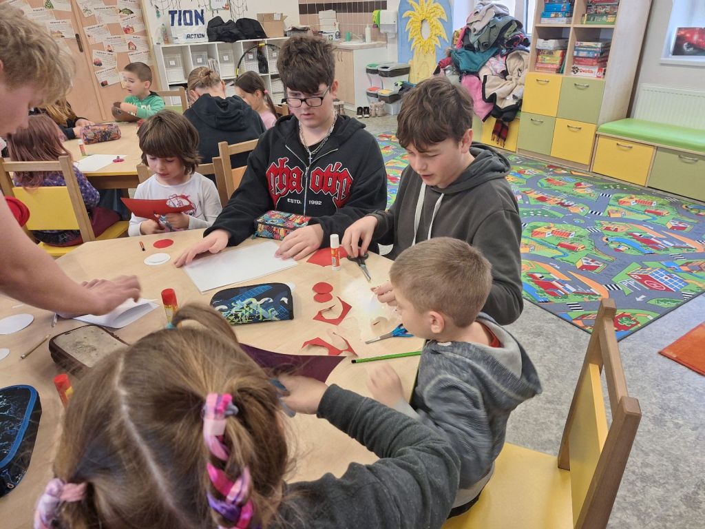 Společně s žáky 8. ročníku si vyráběli krásná vánoční přání. Starší žáci malým školákům ochotně pomáhali. Panovala milá a tvořivá atmosféra, plná radosti a vánoční nálady.