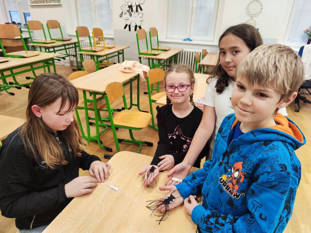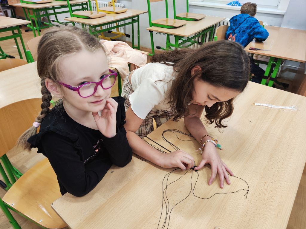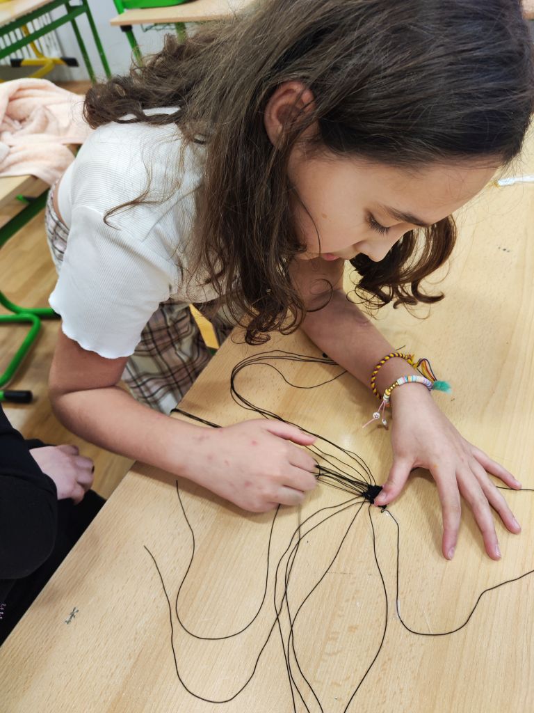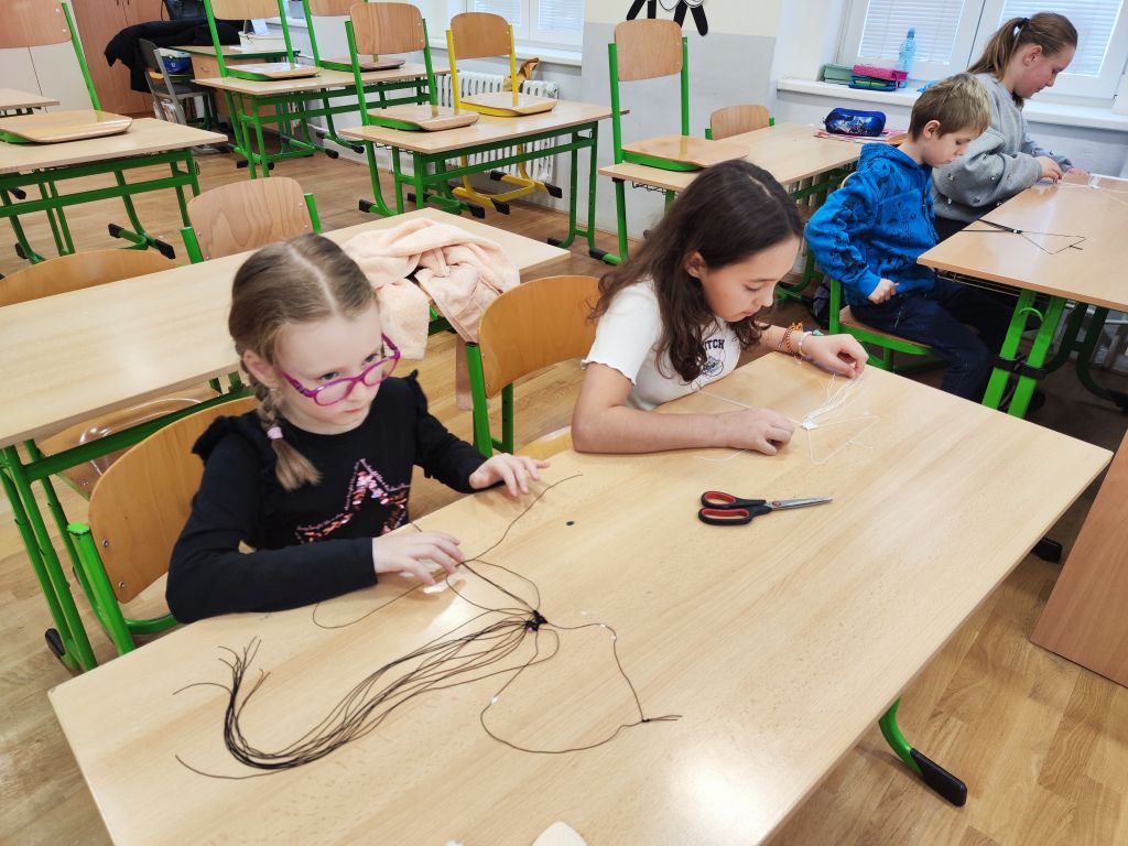Každý si odnesl buď celý nebo zatím jen polovinu výrobku ( jedna naušnice do páru), ale i radost z toho, že z obyčejných provázků může vzniknout něco krásného a naprosto jedinečného.